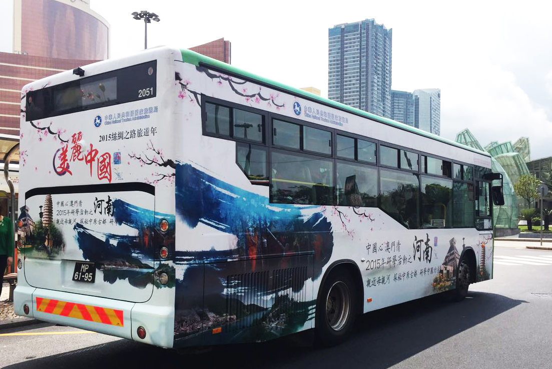 2015年4月1日,国家旅游局在澳门30部澳巴、新时代巴士车身上投放的主题为“中国心?澳门情”内地游学旅游广告正式推出,120部巴士车载电视丝路旅游广告也于同期播放。这些设计独特、内容新颖的流动广告吸引了当地居民的广泛关注。